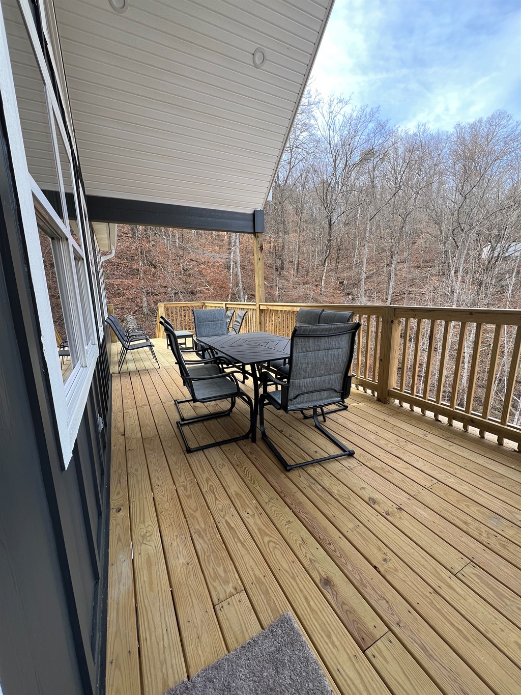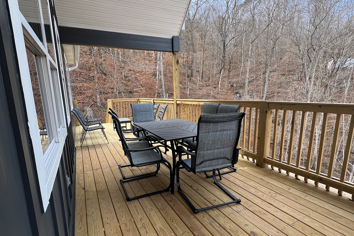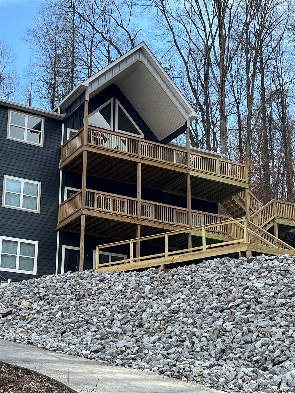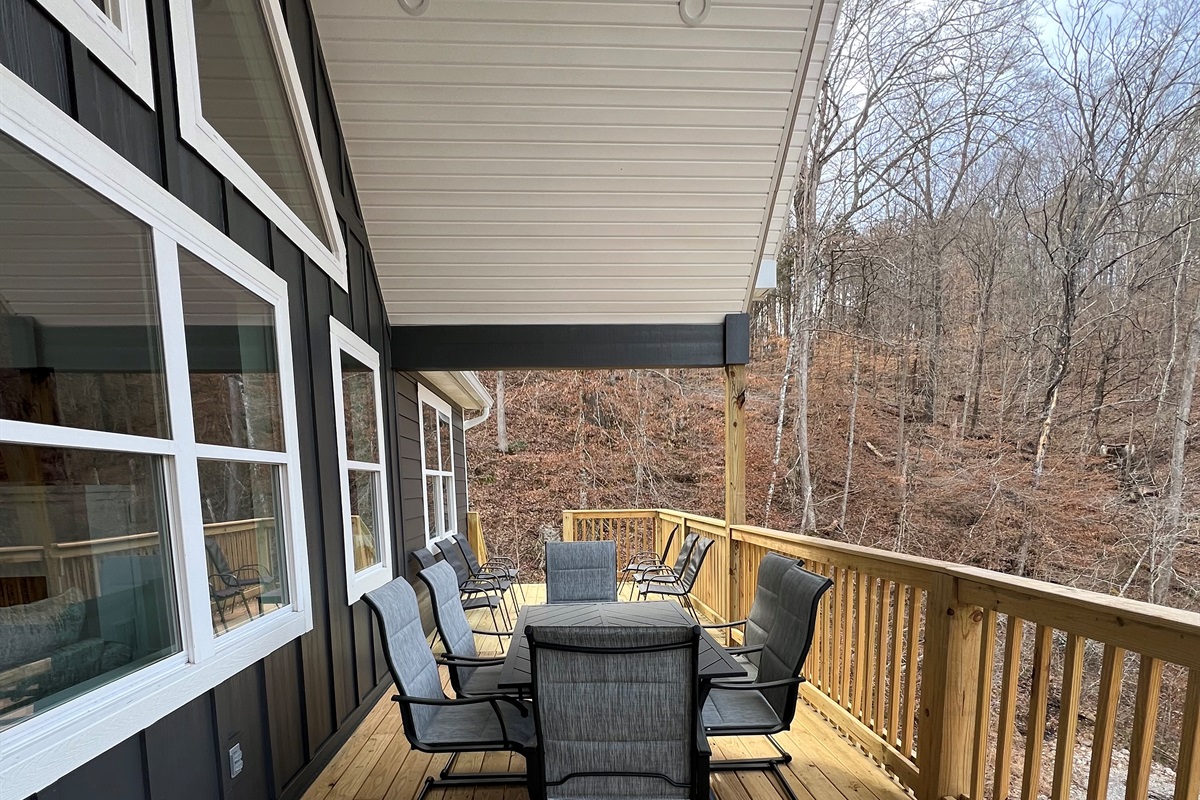8 bedrooms, 6 baths, sleeps 28. Each level has its own deck for sunrise coffee or sunset cocktails.