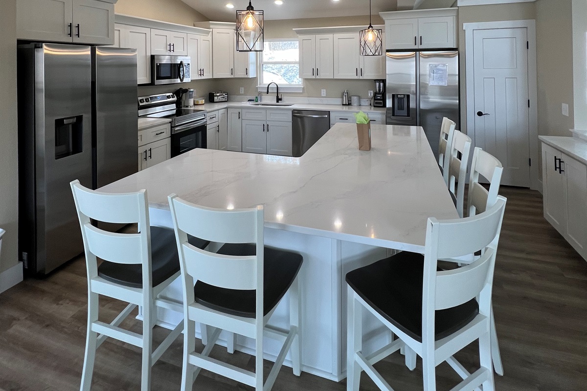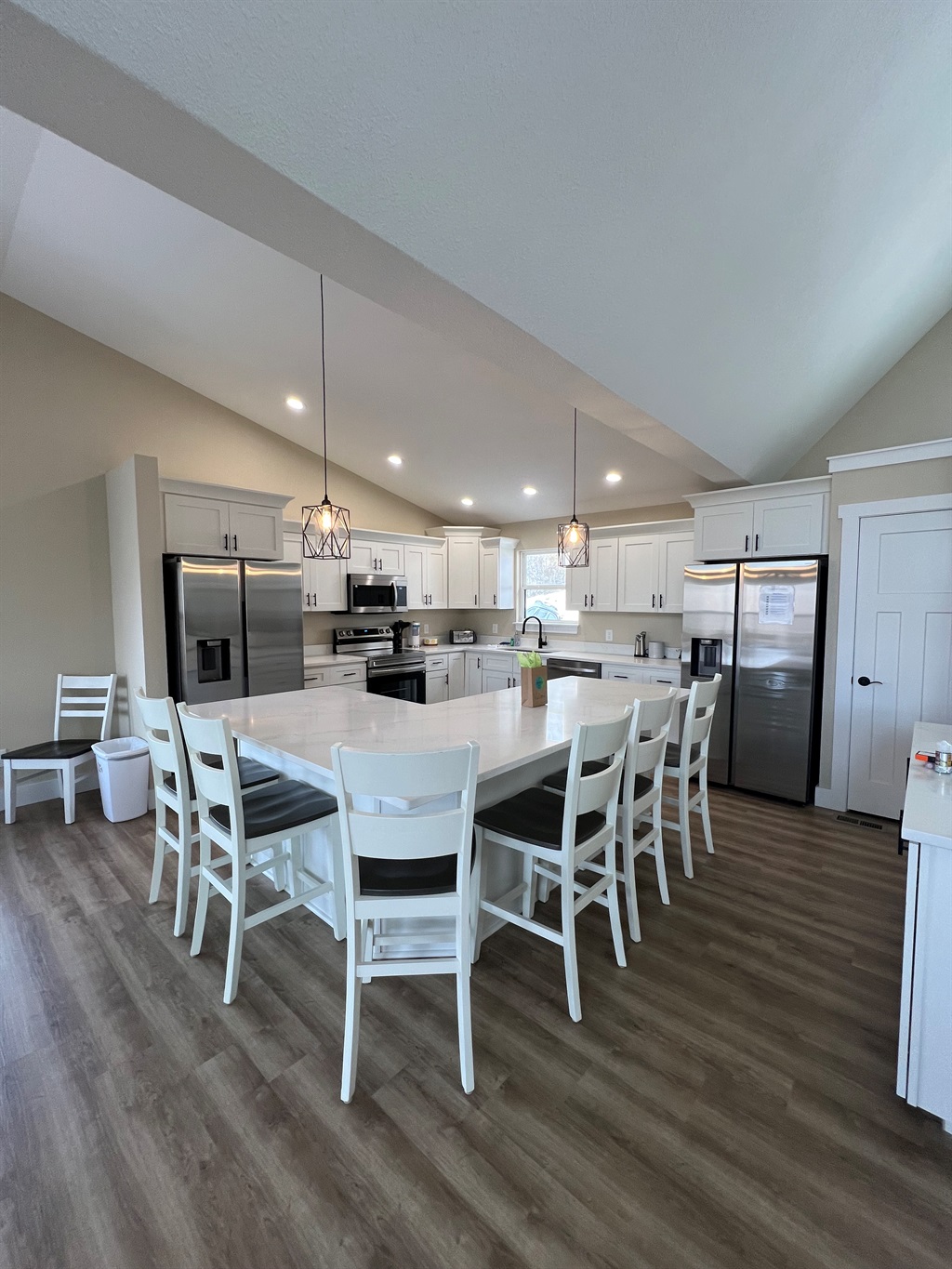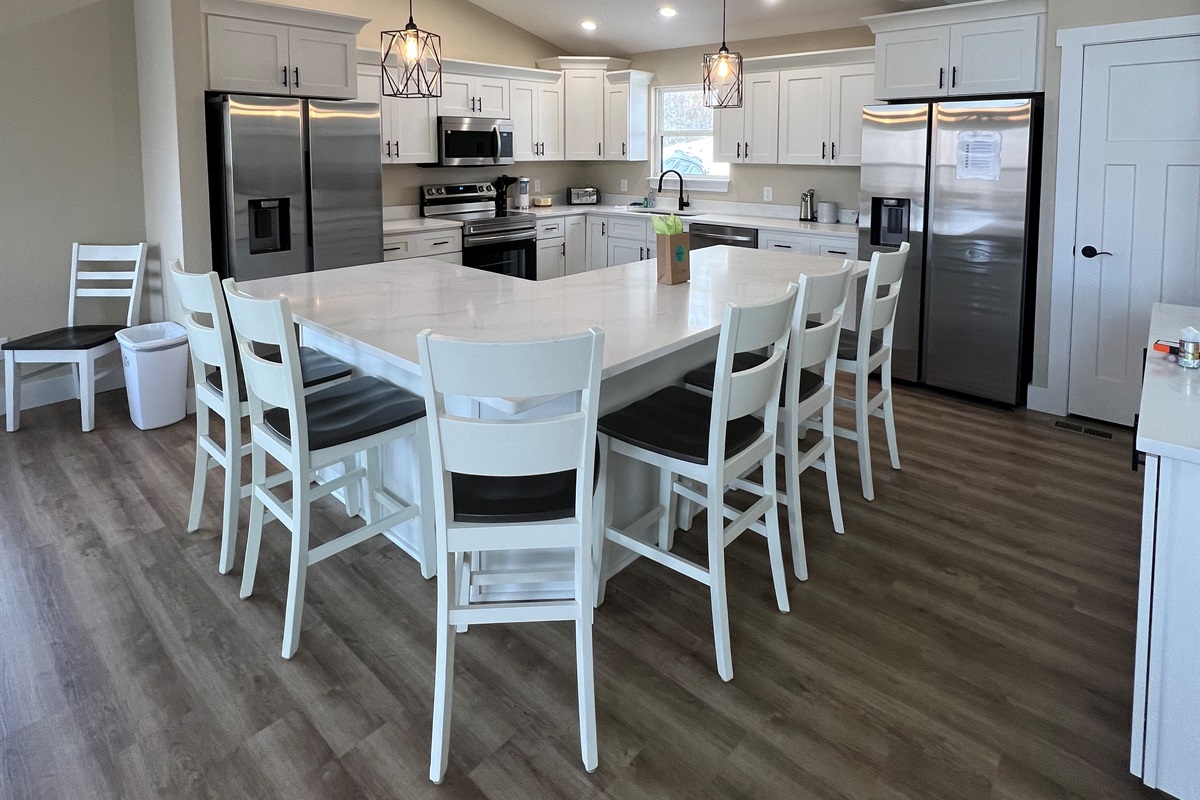 6 Bedrooms • 5 Bathrooms 5 Baths • Sleeps 9-18MAIN LEVEL Enter into a welcoming, homey and tastefully appointed main level with large family seating/TV viewing area, dedicated dining area for 16 and large cook's kitchen stocked and equipped with all your needs to whip up meals quickly and efficiently. 2 full Refrigerators, stove, microwave and dishwasher make cooking and clean up fun. You will also find small appliances such as crock pot, blender, toaster, coffee maker and more. Eating and entertaining will be a highlight of your time together. On this main level you will have 2 King bedrooms with en suites for comfort and privacy. The main level bedrooms make it nice for those who might also have some mobility issues. Step outside to a full deck balcony with views that will entice you to linger. Here you will have comfortable seating and dining with a gas grill for your outdoor cooking needs.